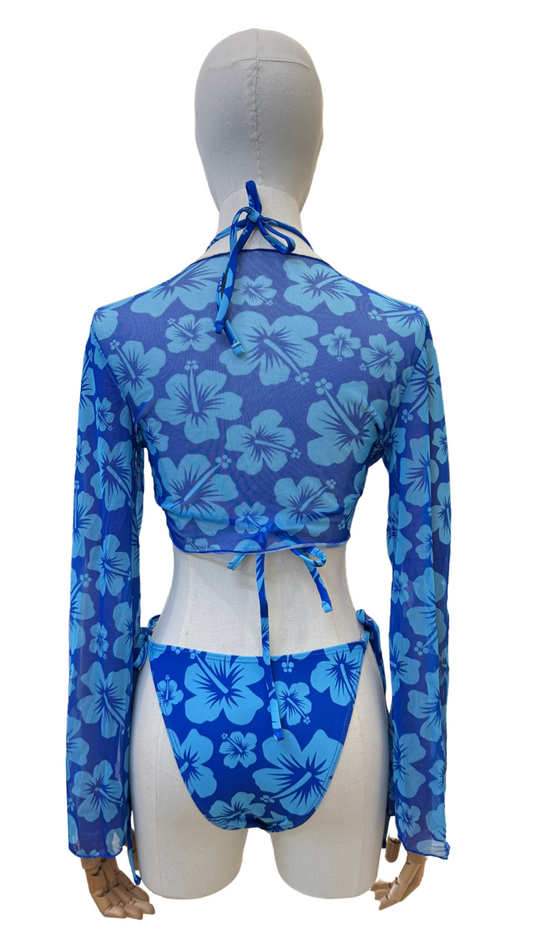 Set bikini tropical + top de tela mesh