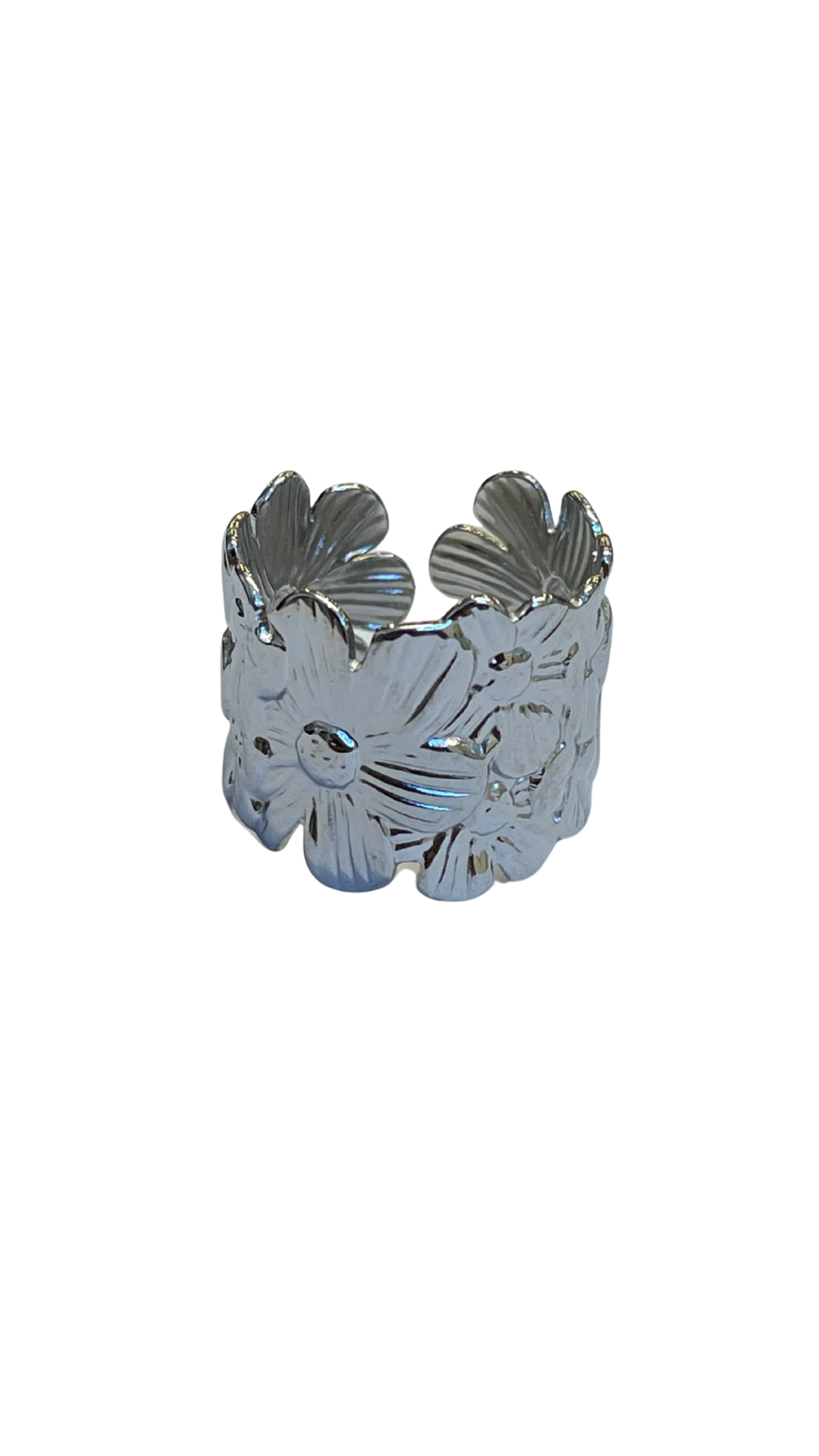 Anillo ajustable de acero inoxidable de flores tropicales