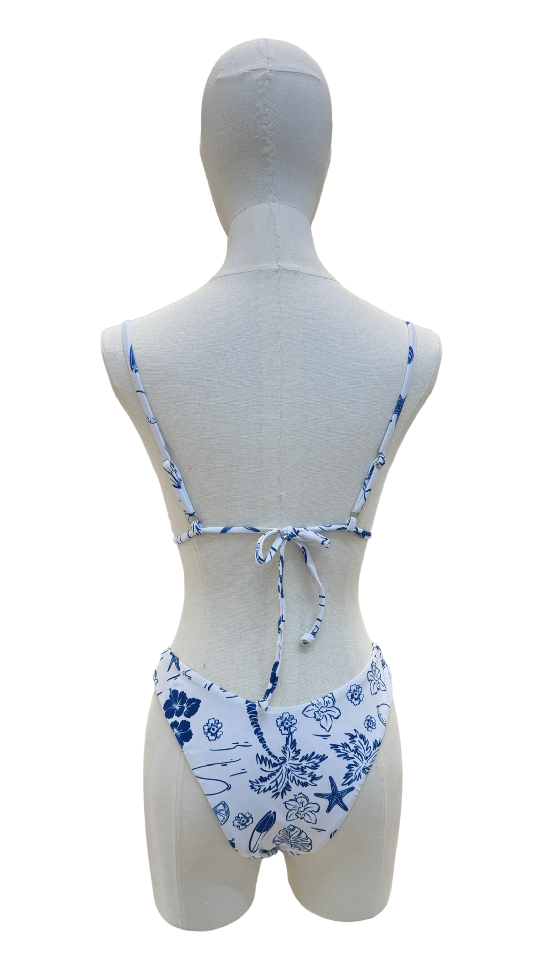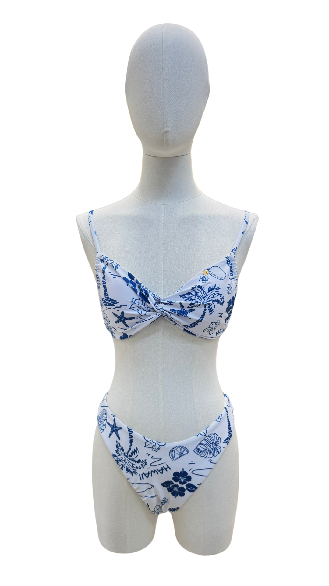 Bañador de estampado Hawaiano, tirantes ajustables, bottom de cobertura media en glúteos.