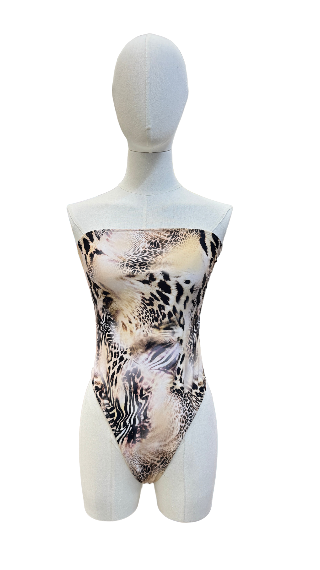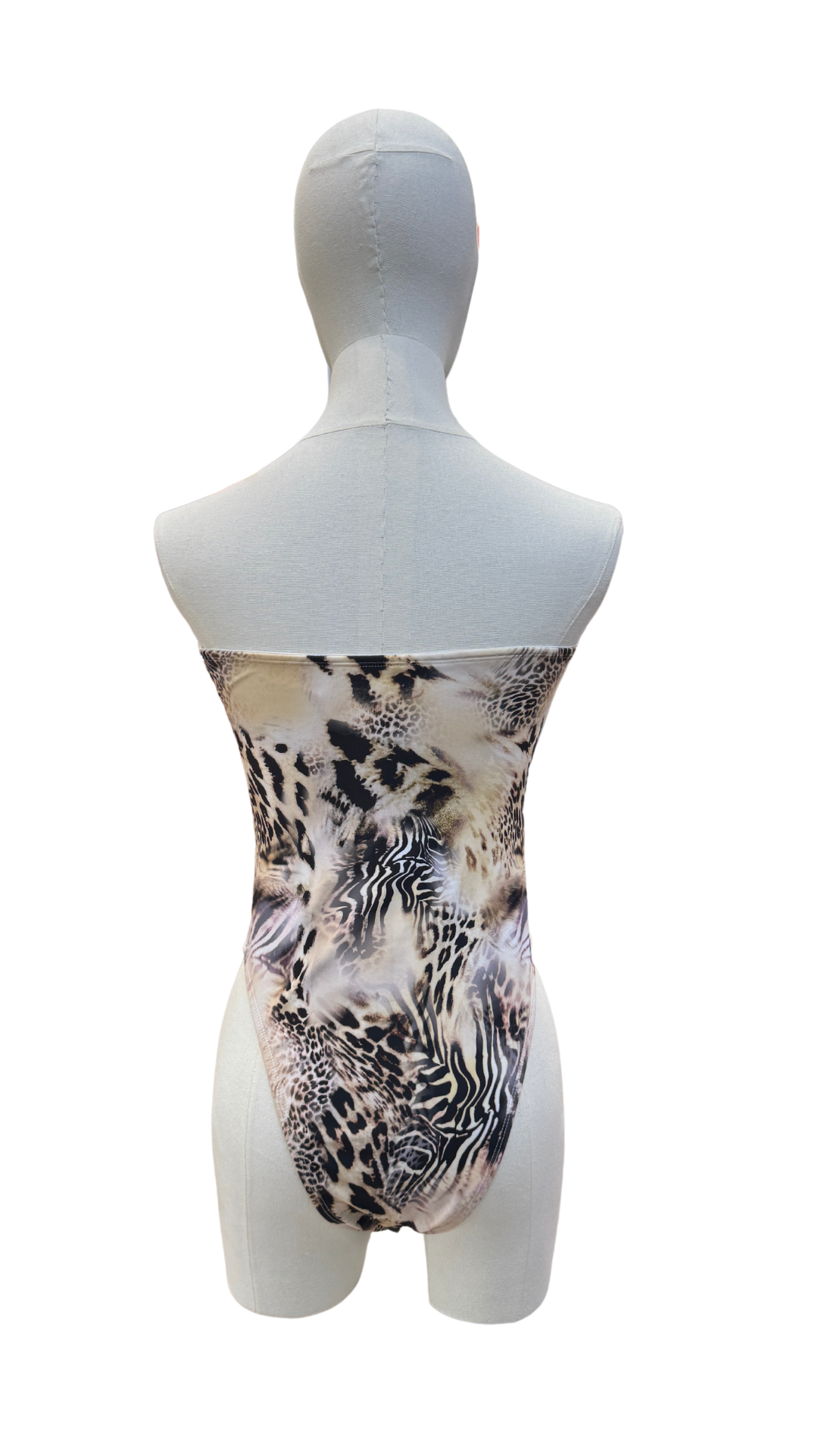 Bañador strapless estampado de animal print, con cobertura media en glúteos.