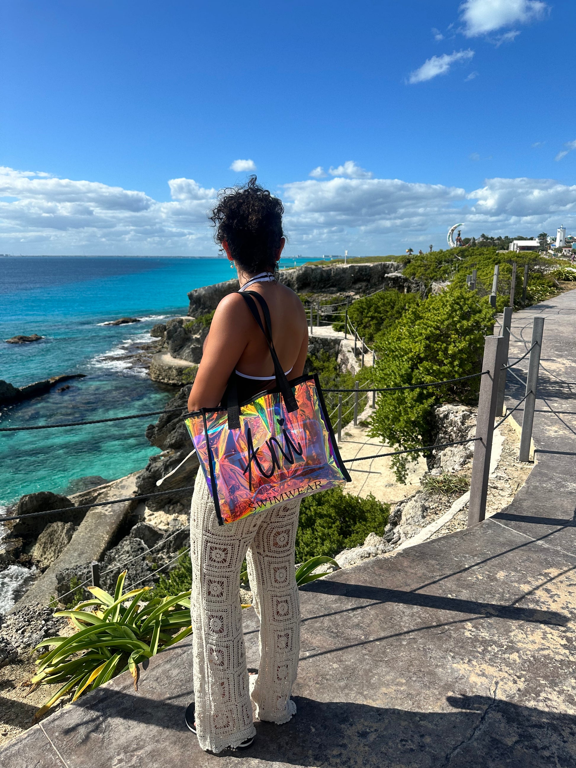Pantalón tejido con patrón de soles, short de fondo para usarse con y sin bikini.