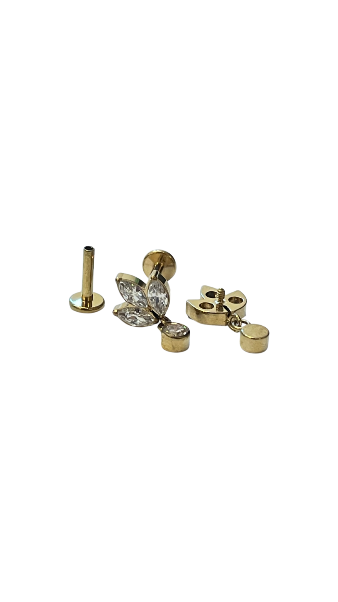 Piercing tres hojas con zirconia y dije de titanio grado implante
