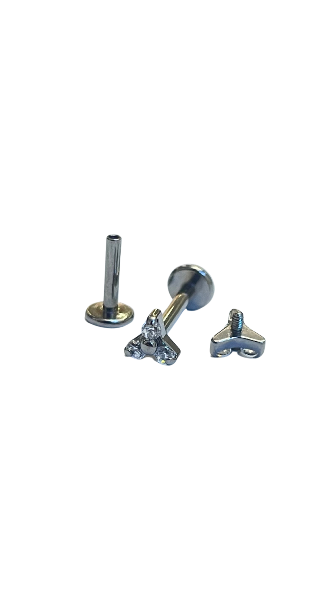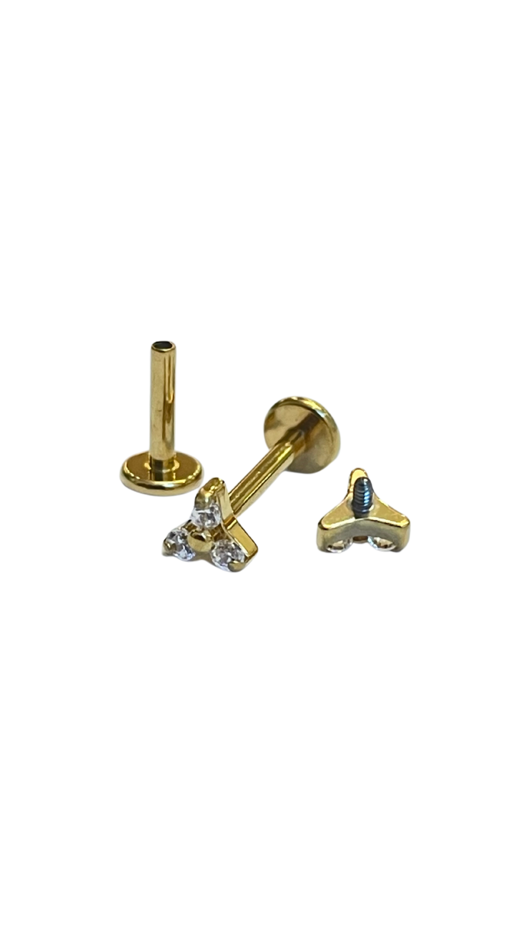 Piercing tres zirconias flat back de titanio grado implante