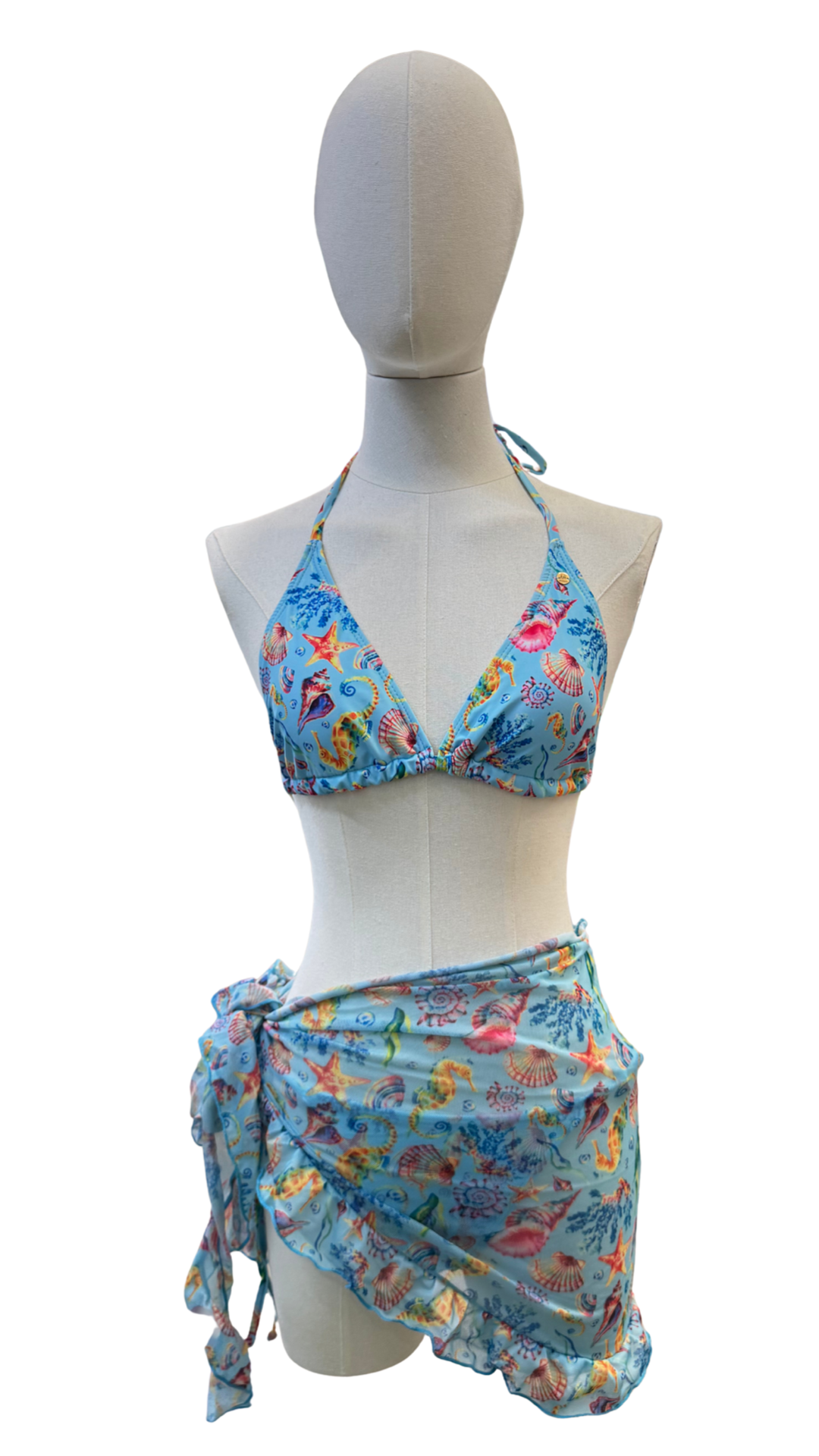 Set bikini completamente ajustable + pareo corto mesh