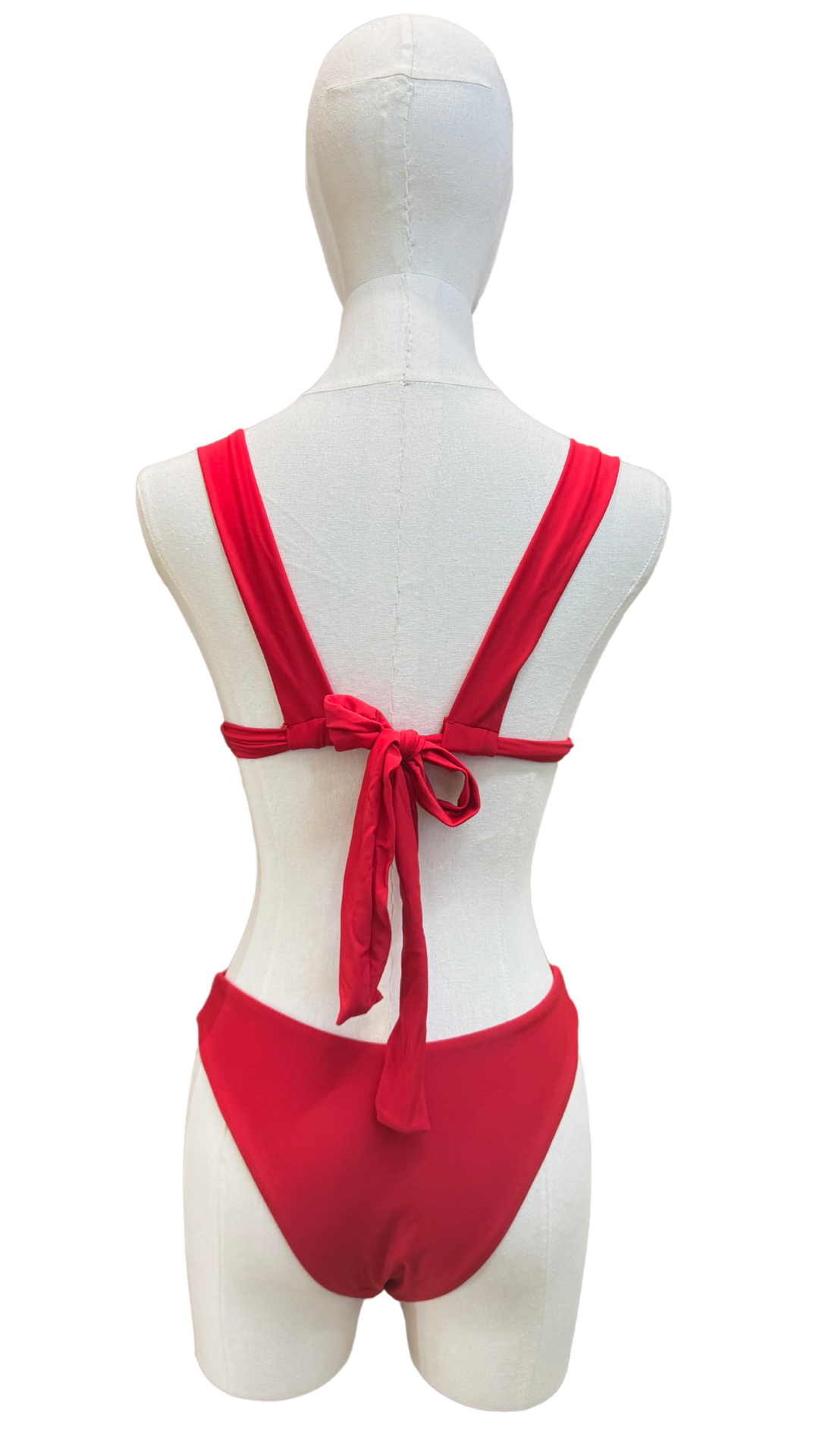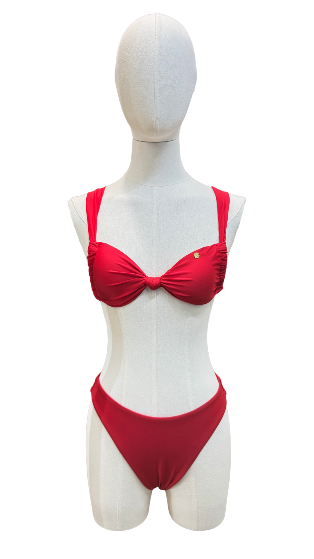 Set bikini con top de nudo, top con tirantes ajustables y bottom a la cadera con cobertura media en glúteos.