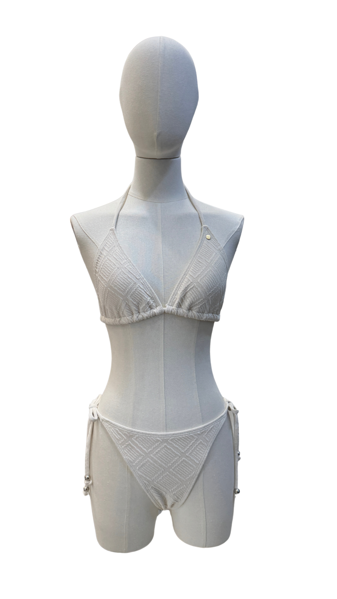 Set bikini de tela con textura, sin transparencias.