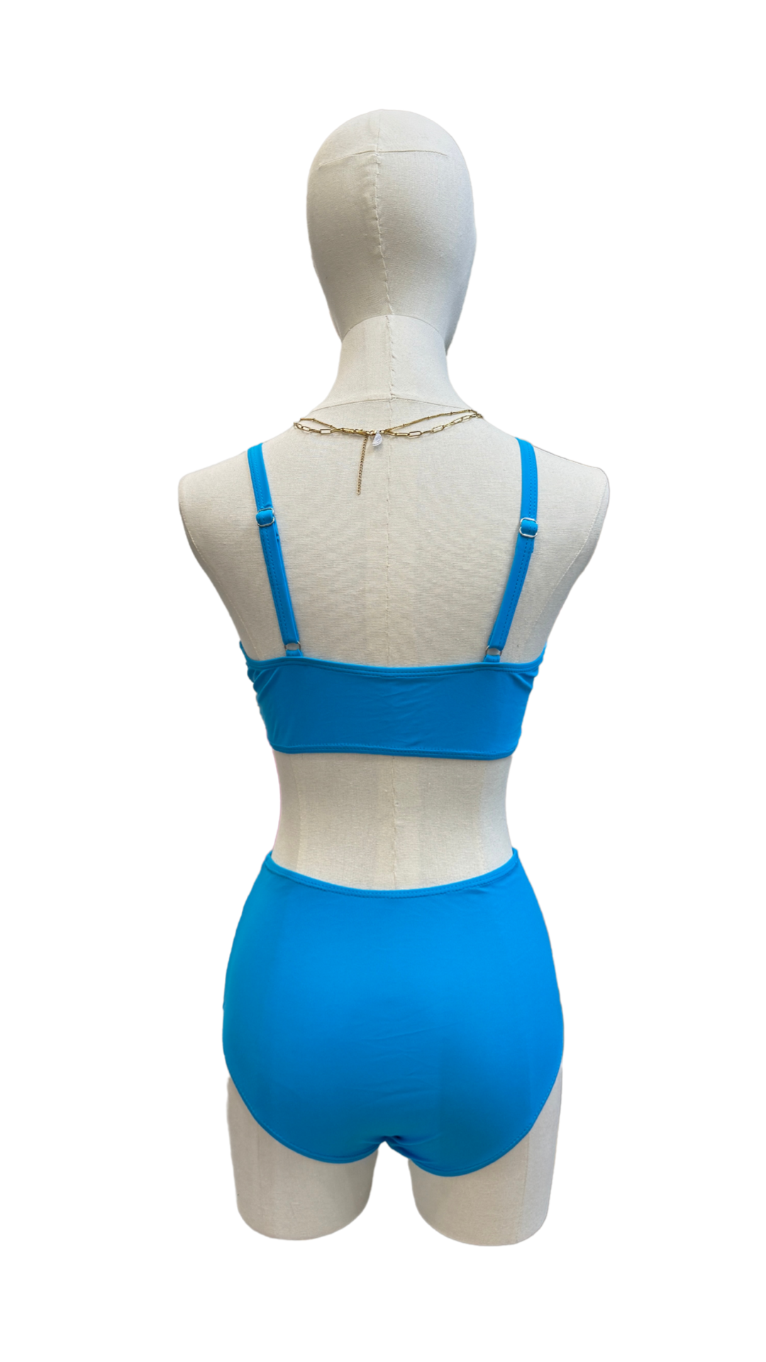 Set bikini de tiro alto con top de tirantes ajustables.