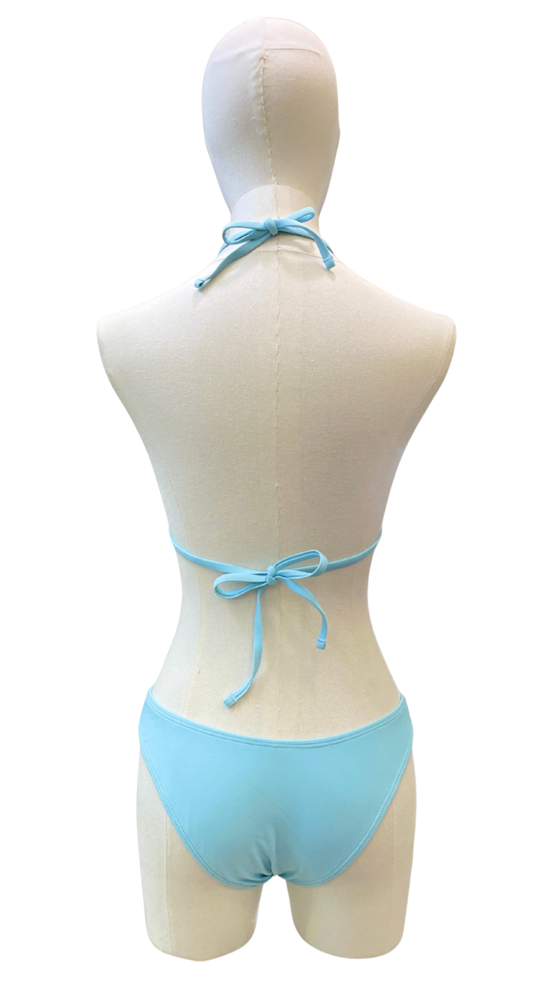 Set bikini de triángulo con top + pareo corto, cobertura media en glúteos.
