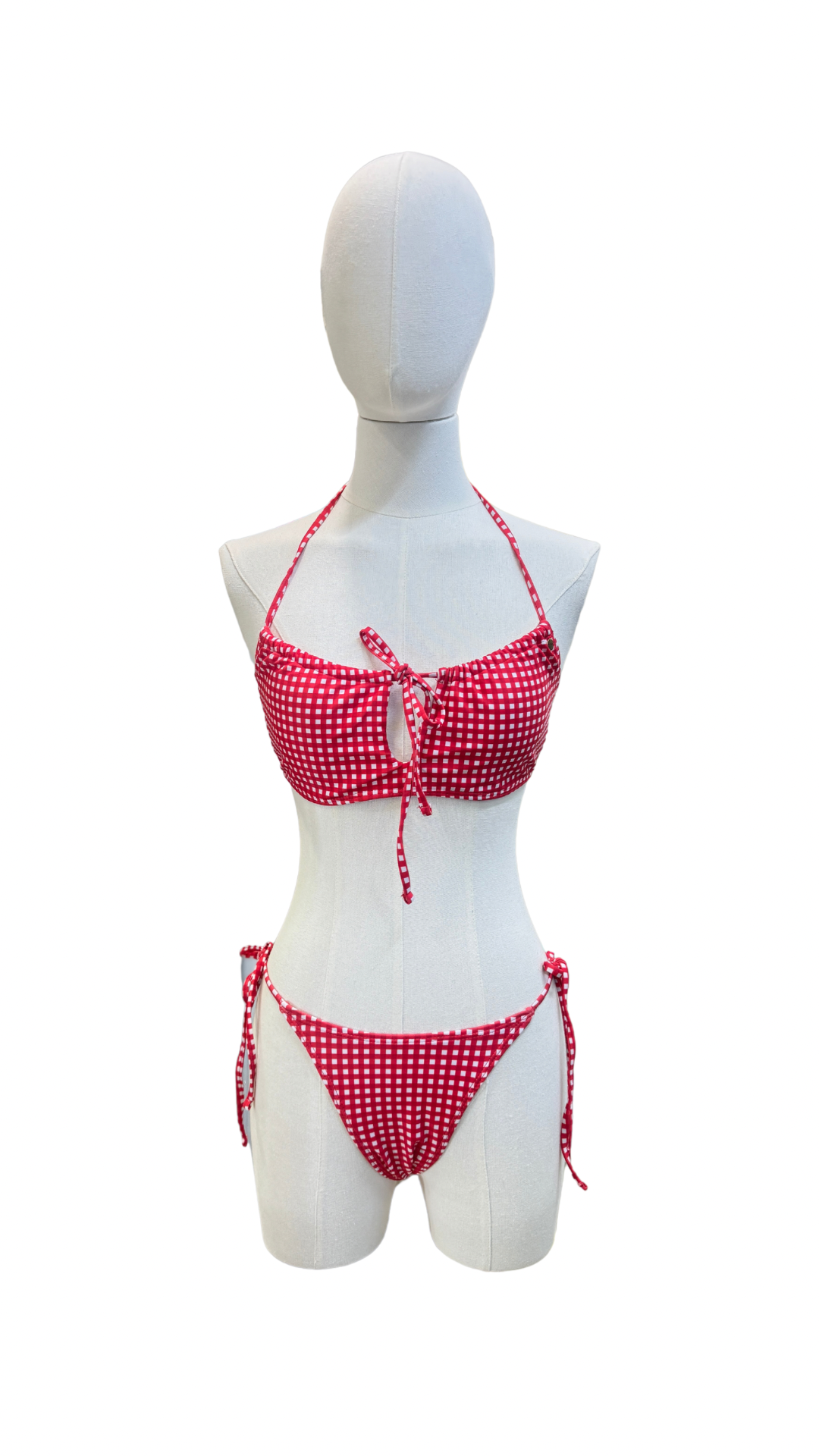 Set bikini estampado de cuadros, top halter, completamente ajustable.