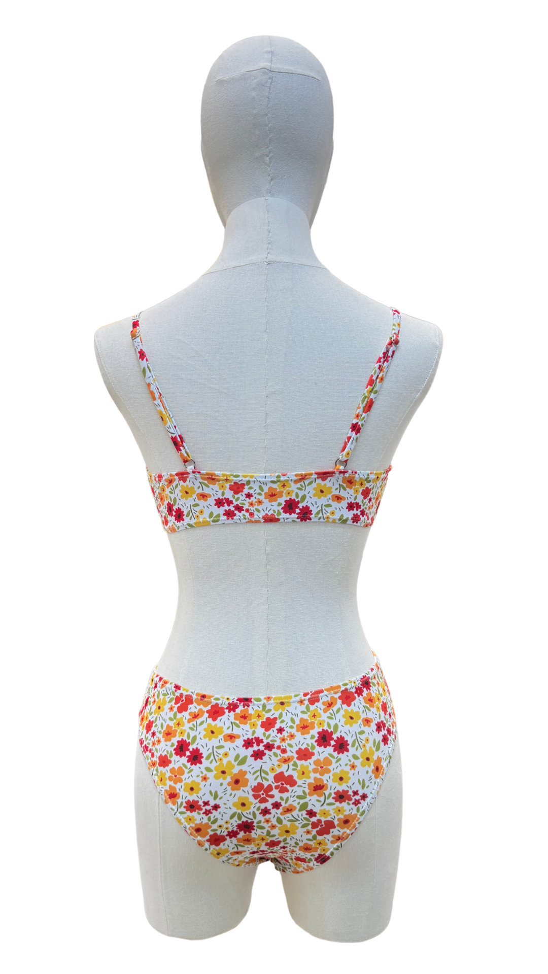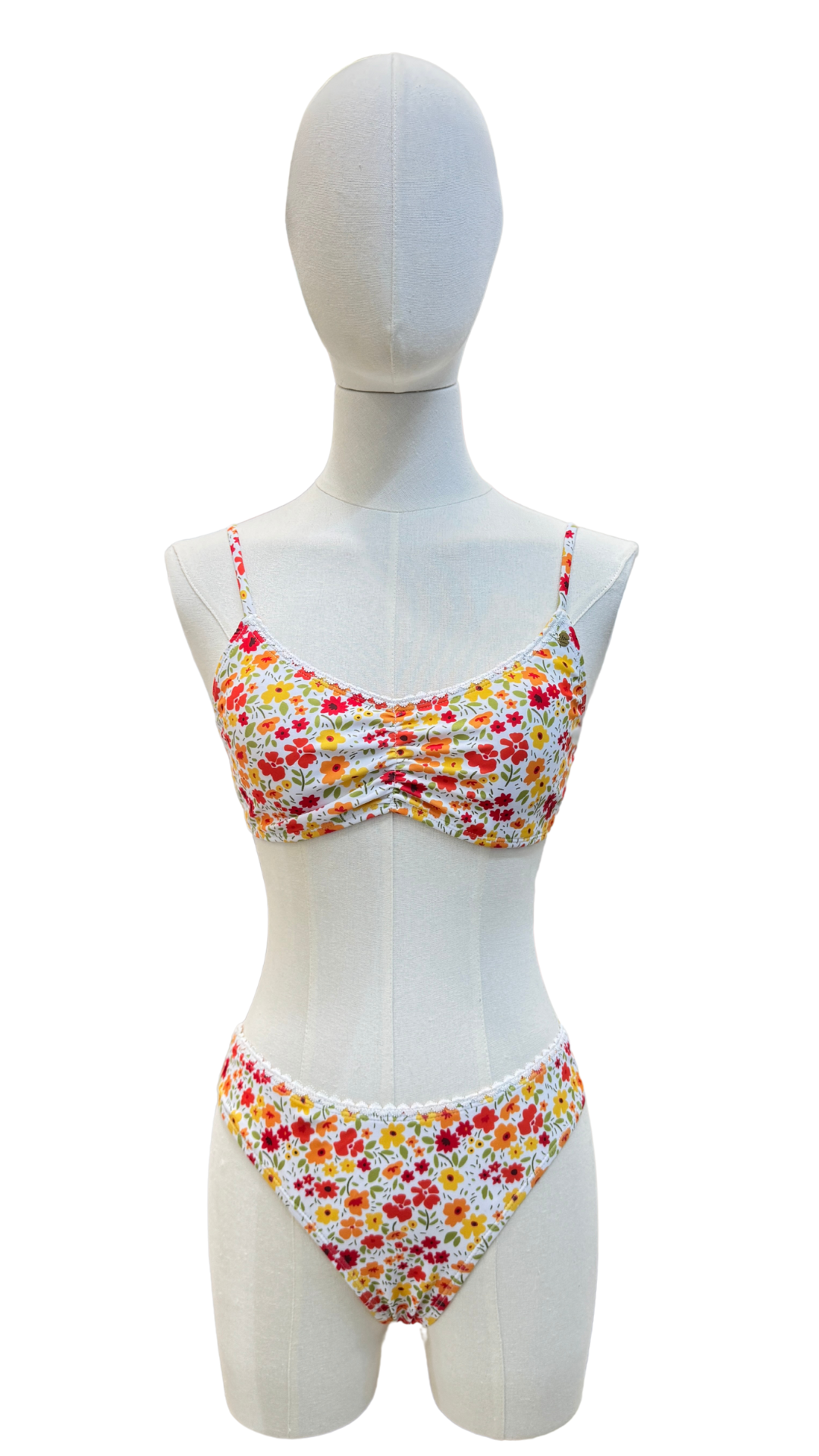 Set bikini estampado floral, tirantes ajustables, bottom con cobertura amplia en glúteos.