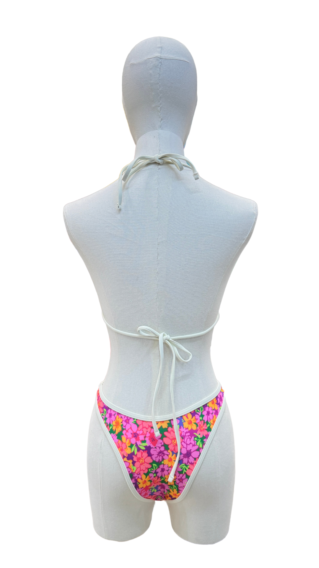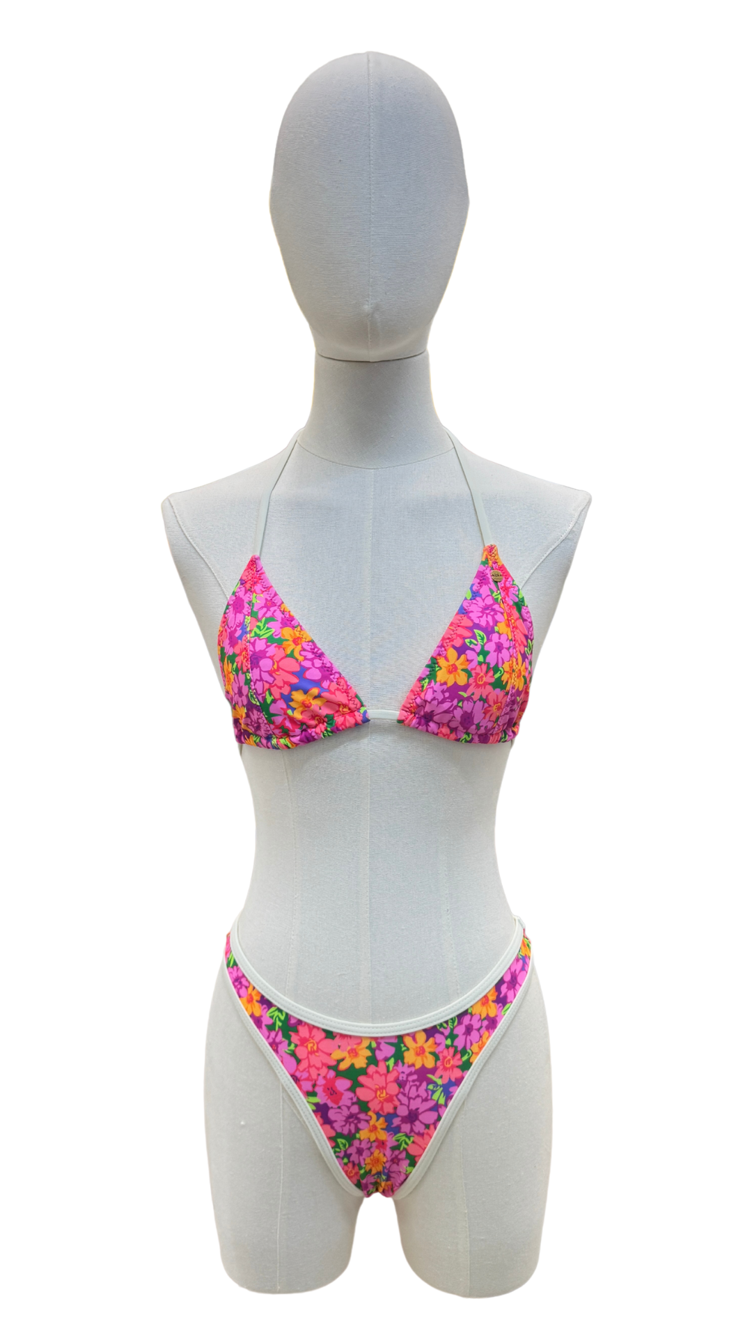 Set bikini estampado floral Con top de triángulo completamente ajustable. Bottom de resaque medio en glúteos.