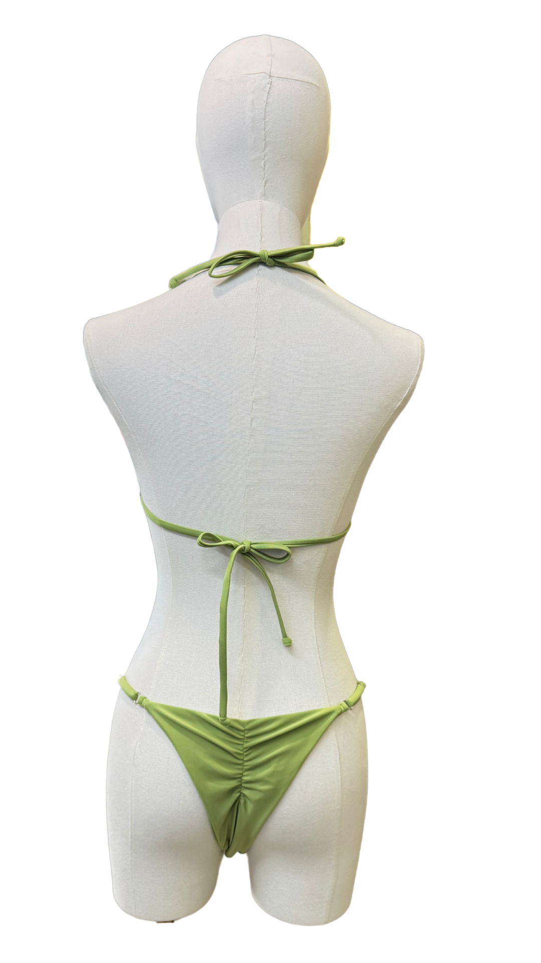 Set bikini Estrella, completamente ajustable, detalle fruncido en bottom con cobertura baja en glúteos. Detalle dorado de estréllalas en top.