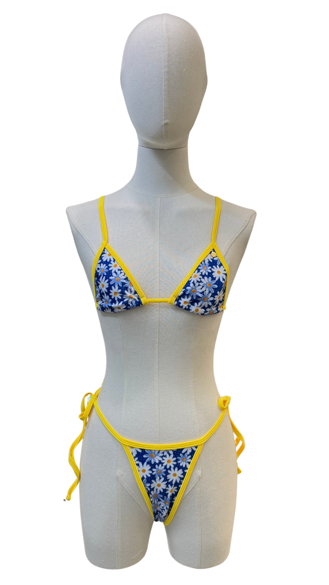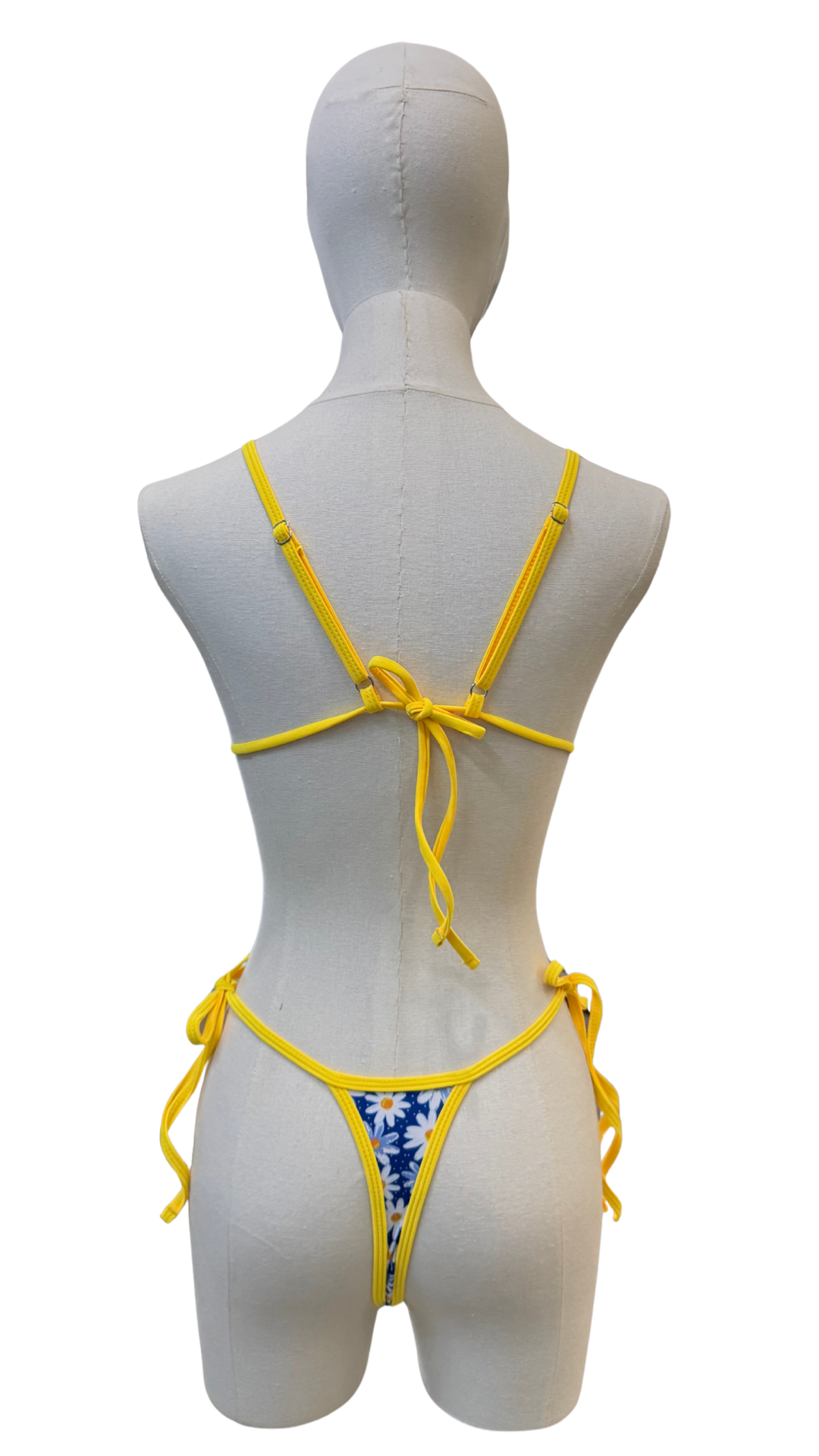Set bikini completamente ajustable de estampado de margaritas, de tanga mini.