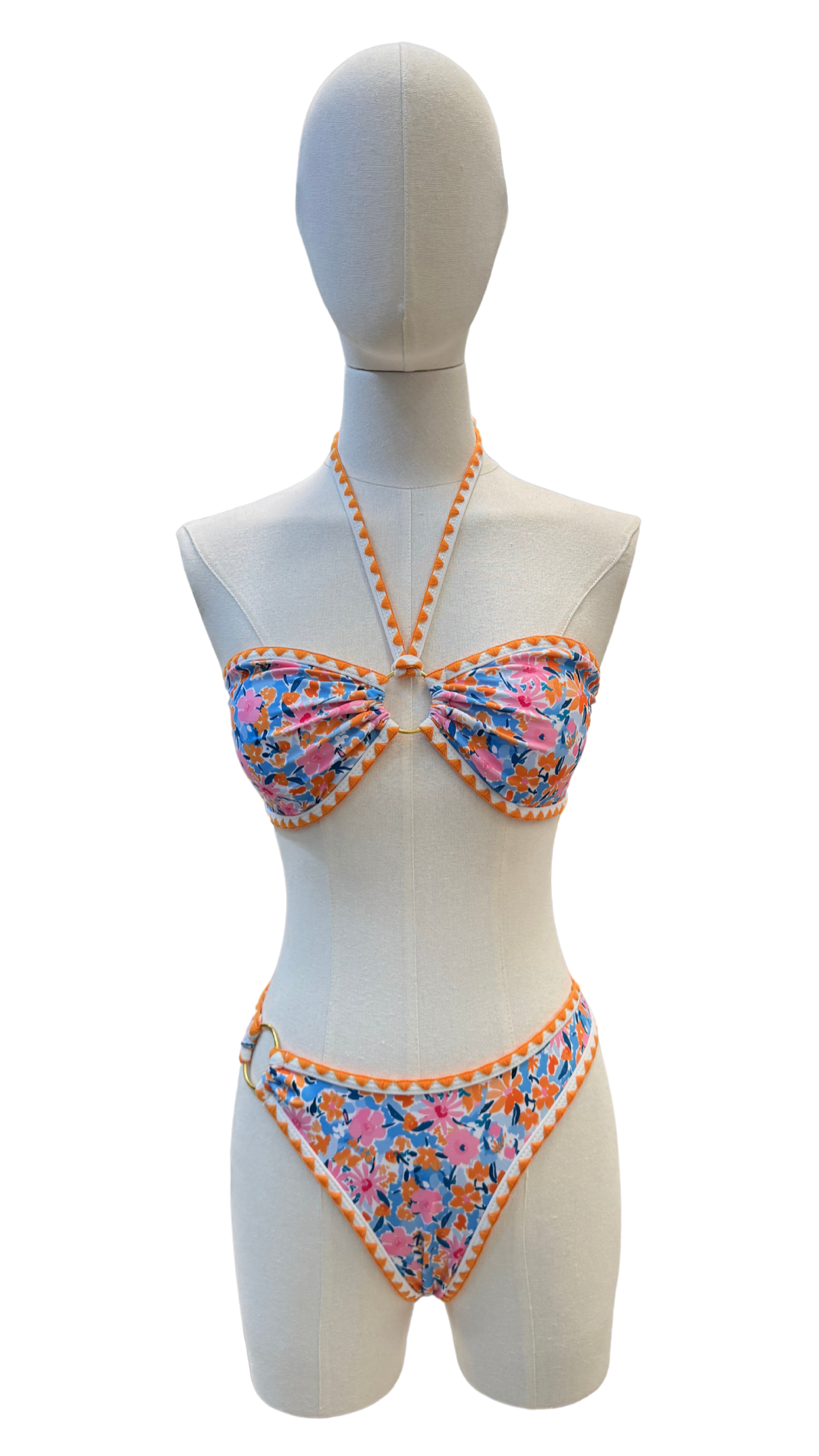 Set bikini strapless de estampado floral, tirantes ajustables y detalles de aros.