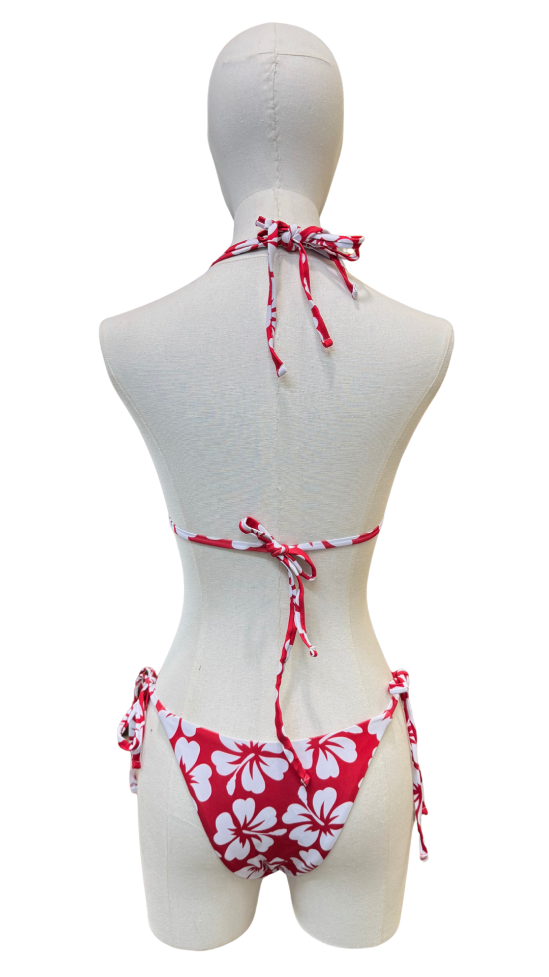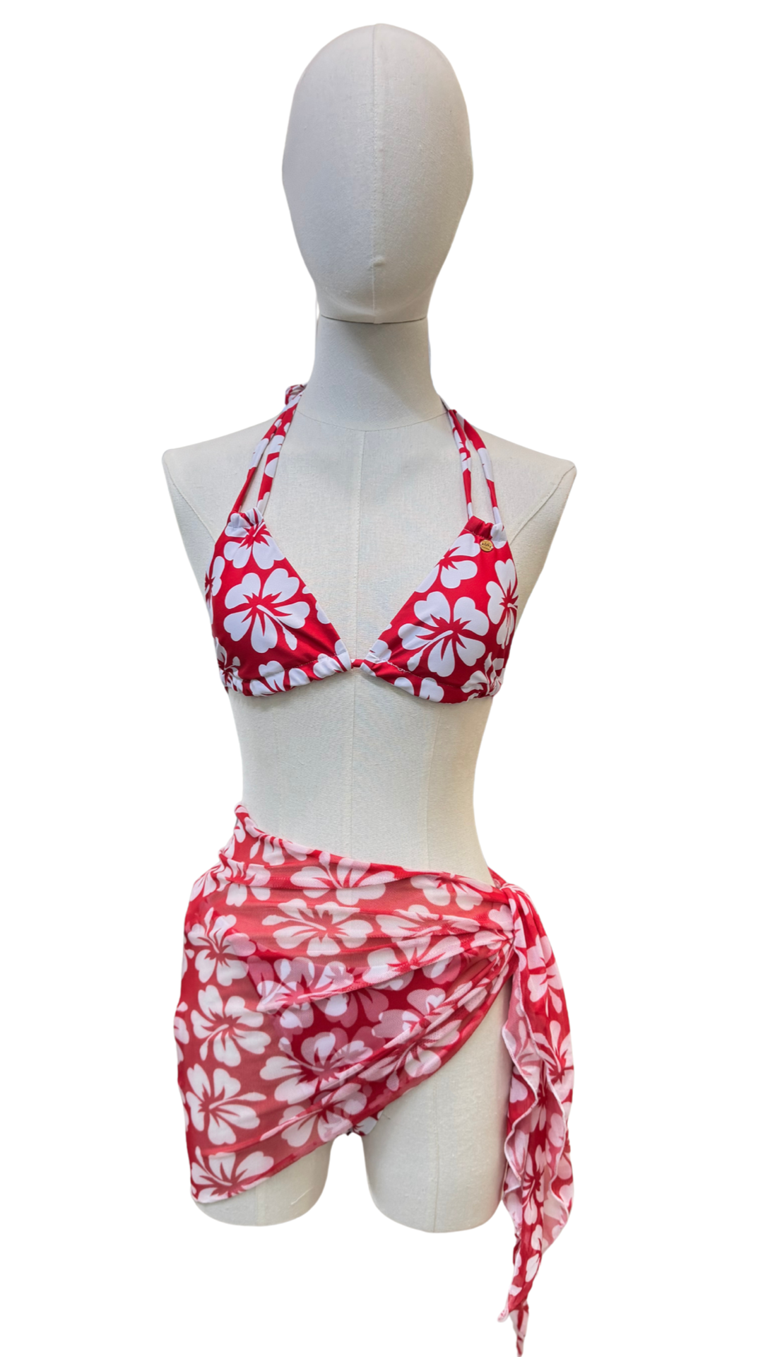 Set bikini completamente ajustable de estampado tropical + pareo corto de tela mesh estampado, cobertura media en glúteos.