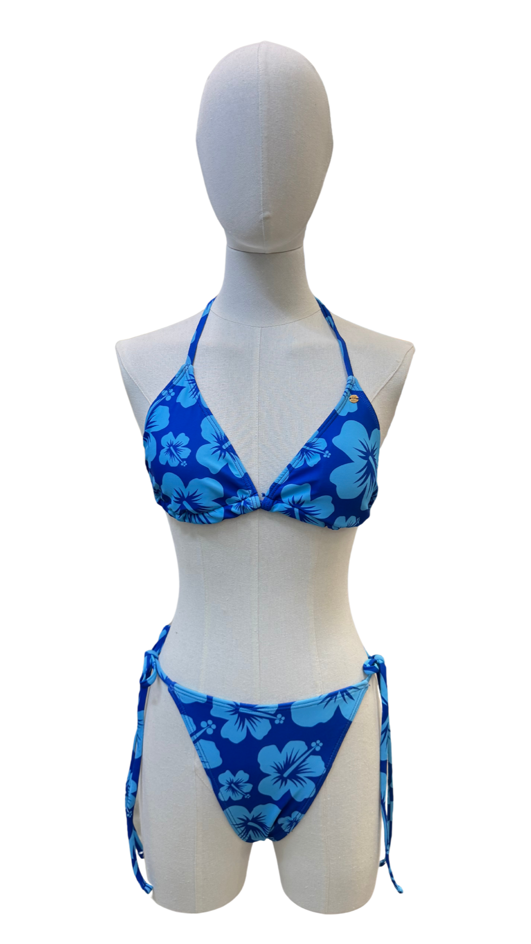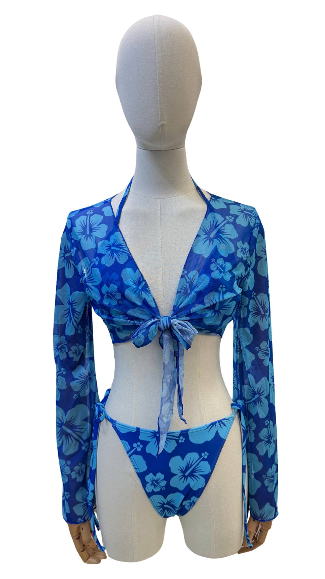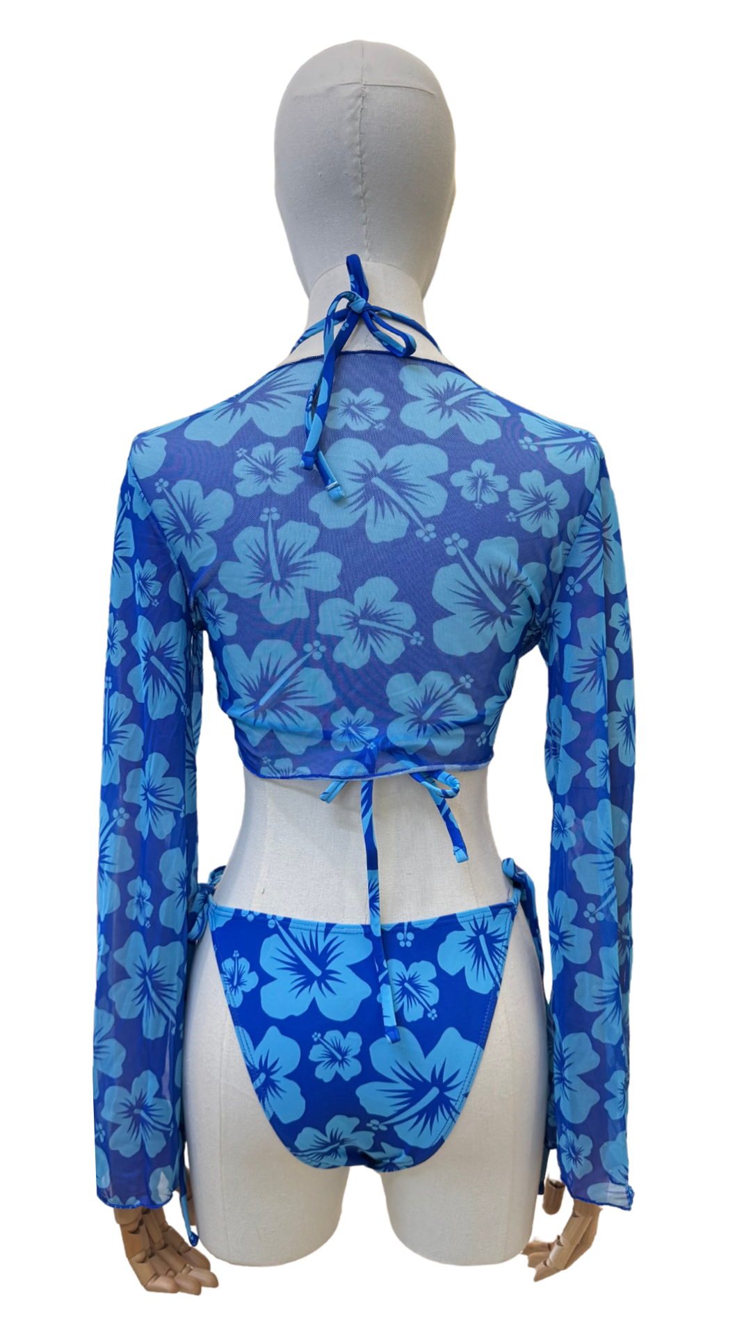 Set bikini completamente ajustable de estampado tropical + top de tela mesh ajustable.